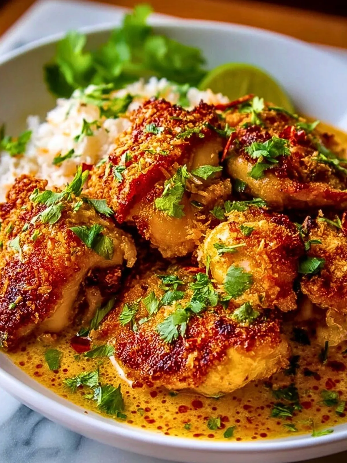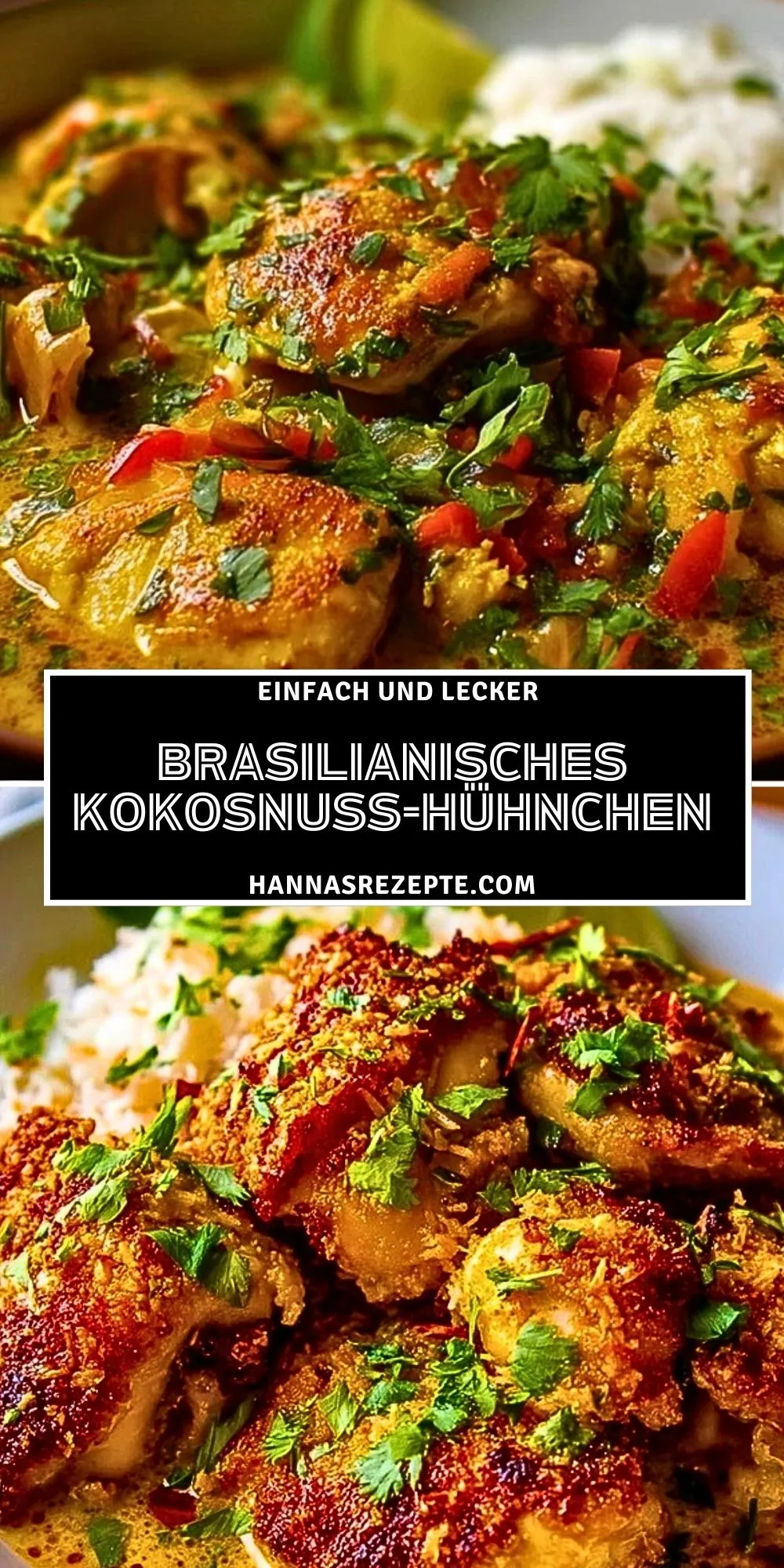 Brasilianisches Kokosnuss-Hühnchen ist ein aromatisches Gericht mit zarten Hähnchenschenkeln, cremiger Kokossoße, Paprika, Limette und frischen Kräutern. Perfekt zu Reis und ein exotisches Highlight für gesellige Abende.