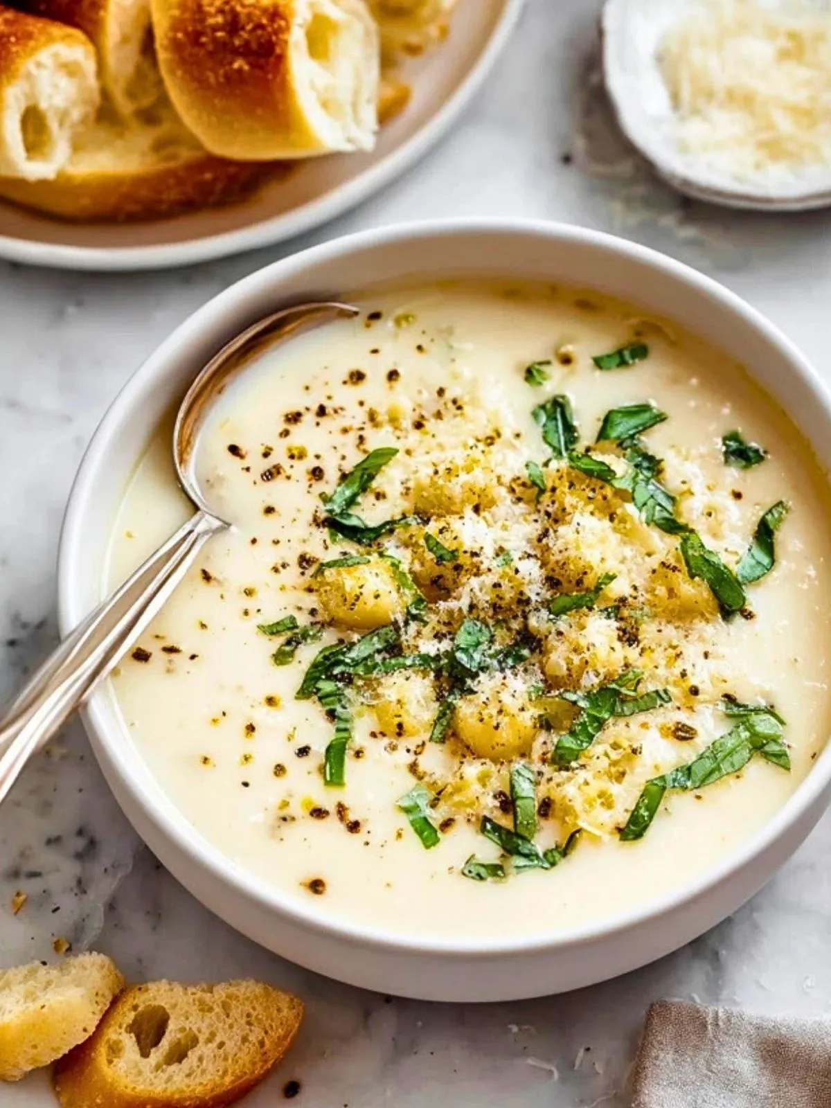 So bereitest du Cremige Knoblauch-Parmesan-Suppe zu