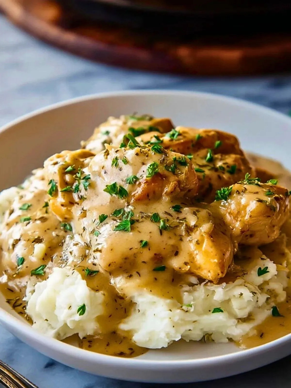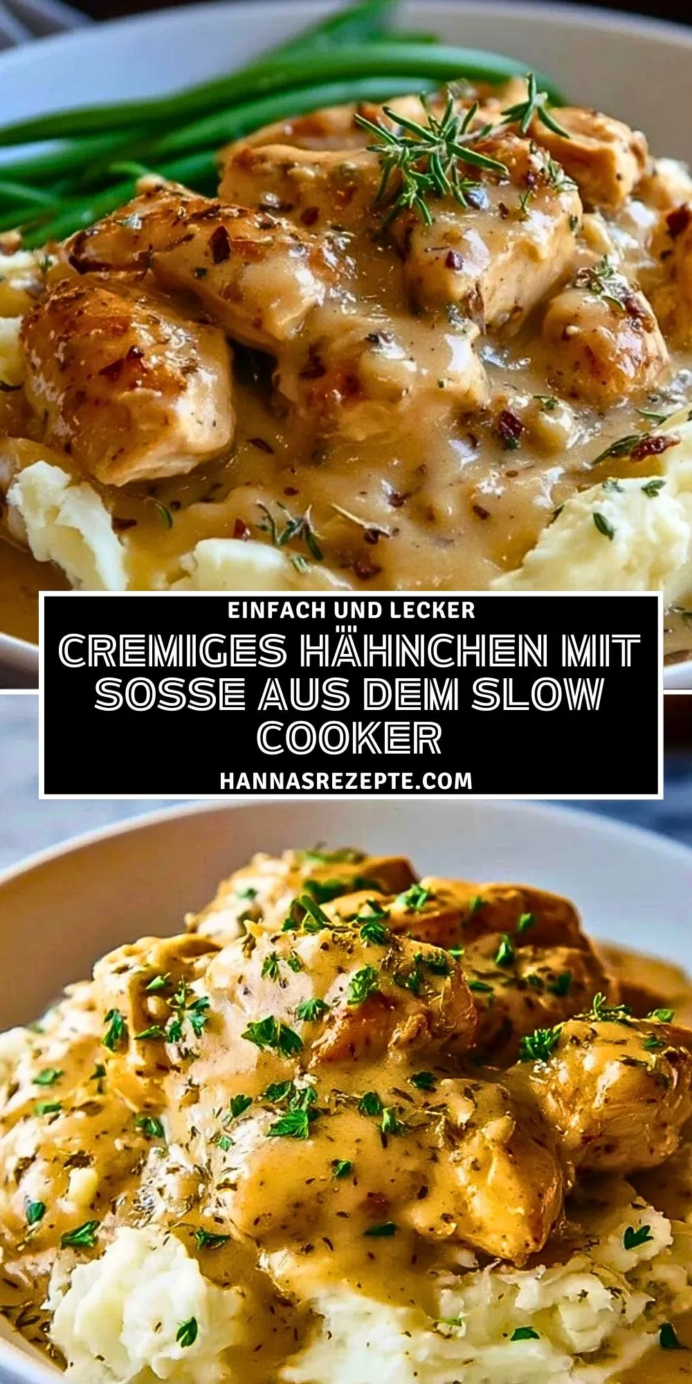 Cremiges Hähnchen mit Soße aus dem Slow Cooker ist ein echtes Wohlfühlgericht: Zartes Hähnchenfleisch gart langsam in einer würzigen Sahnesoße, die wunderbar zu Kartoffelpüree, Reis oder Nudeln passt. Perfekt für stressfreie Familienküche!