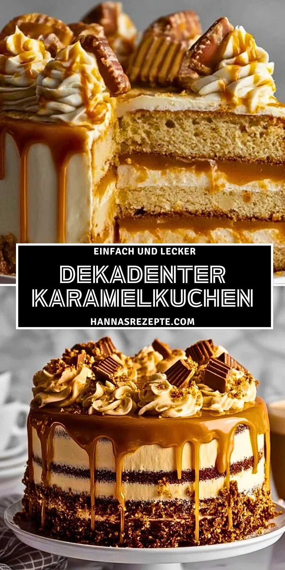 Ein dekadenter Karamell-Kuchen ist nicht nur ein Augenschmaus, sondern begeistert auch mit seinem reichen, buttrigen Geschmack und der unwiderstehlichen Kombination aus weichem Biskuit, luftiger Karamellcreme und einer verführerischen Schicht Karamellsauce. Jeder Bissen ist eine harmonische Mischung aus süßen, salzigen und nussigen Noten, gekrönt von knusprigen Toppings und kleinen Überraschungen im Inneren.