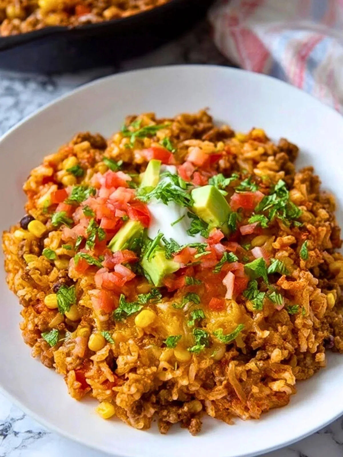 Dieser mexikanische Reisauflauf aus nur einem Topf vereint alles, was man sich von einem schnellen, sättigenden Familiengericht wünscht: würziges Hackfleisch, saftigen Mais, aromatischen Reis und eine Extraportion geschmolzenen Käse. Alles wird direkt in der Pfanne zubereitet, was bedeutet: Wenig Abwasch, maximaler Geschmack! Dieses Gericht ist perfekt für geschäftige Wochentage, wenn es unkompliziert und lecker sein soll.