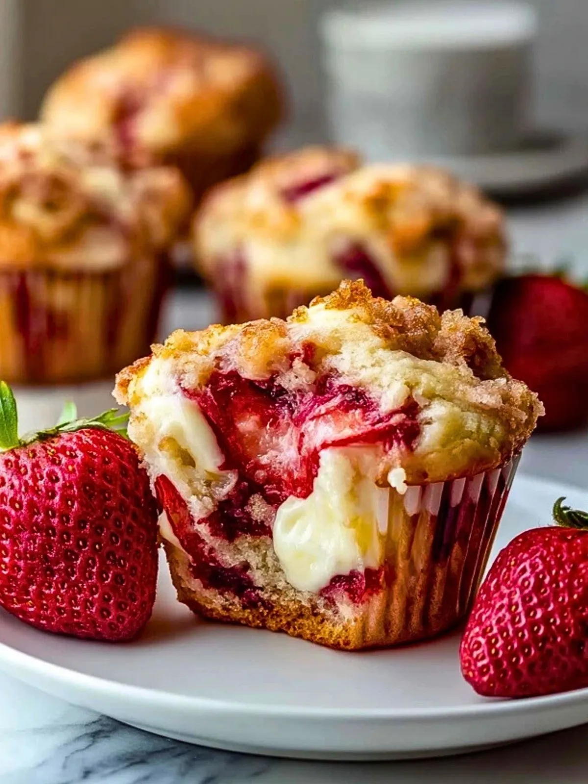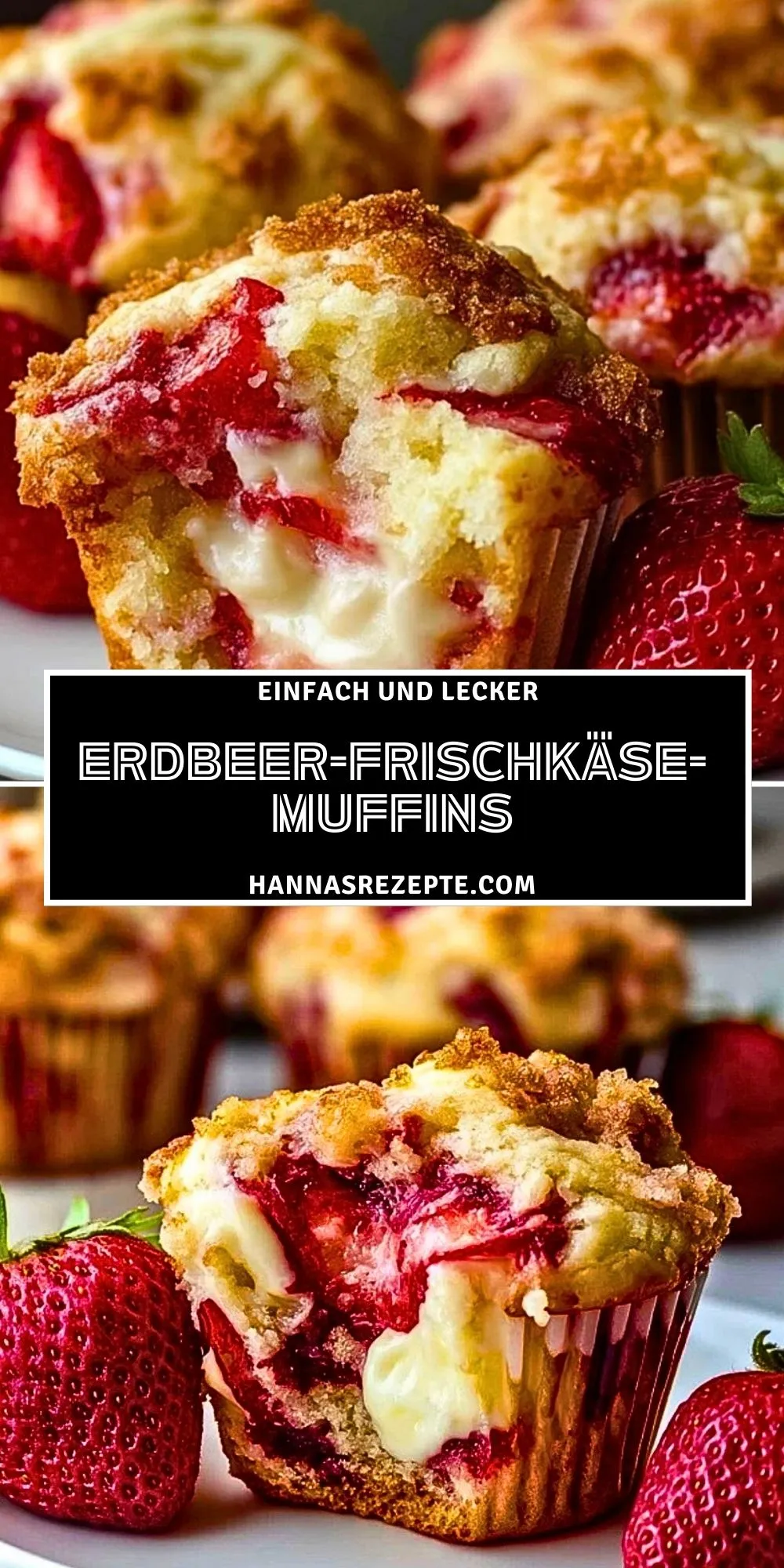 Keywords: Erdbeermuffins, Frischkäse Muffins, Sommergebäck, Muffins mit Streuseln