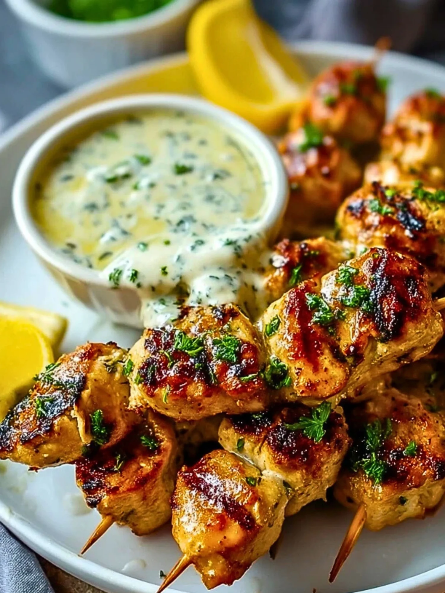 Saftige, goldbraun gegrillte Hähnchenstücke treffen auf eine wunderbar cremige Knoblauchsauce mit frischer Petersilie und Zitrone. Dieses Rezept bringt dir Urlaubsfeeling auf den Teller – perfekt als Fingerfood, für das Grillbuffet oder als schnelles Abendessen.