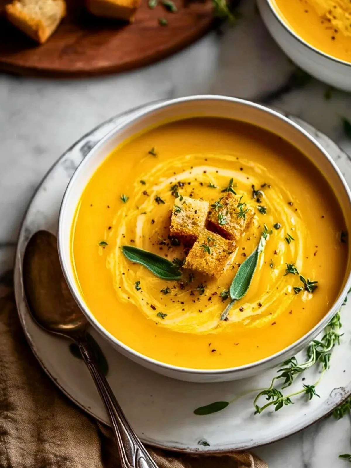 Wenn der Duft von geröstetem Kürbis, Zwiebeln und frischem Thymian durch die Küche zieht, weiß man: Es wird gemütlich. Diese Geröstete Butternutkürbissuppe überzeugt mit einer natürlichen Süße, feiner Röstaromatik und einer wunderbar cremigen Konsistenz – ganz ohne komplizierte Zutaten.