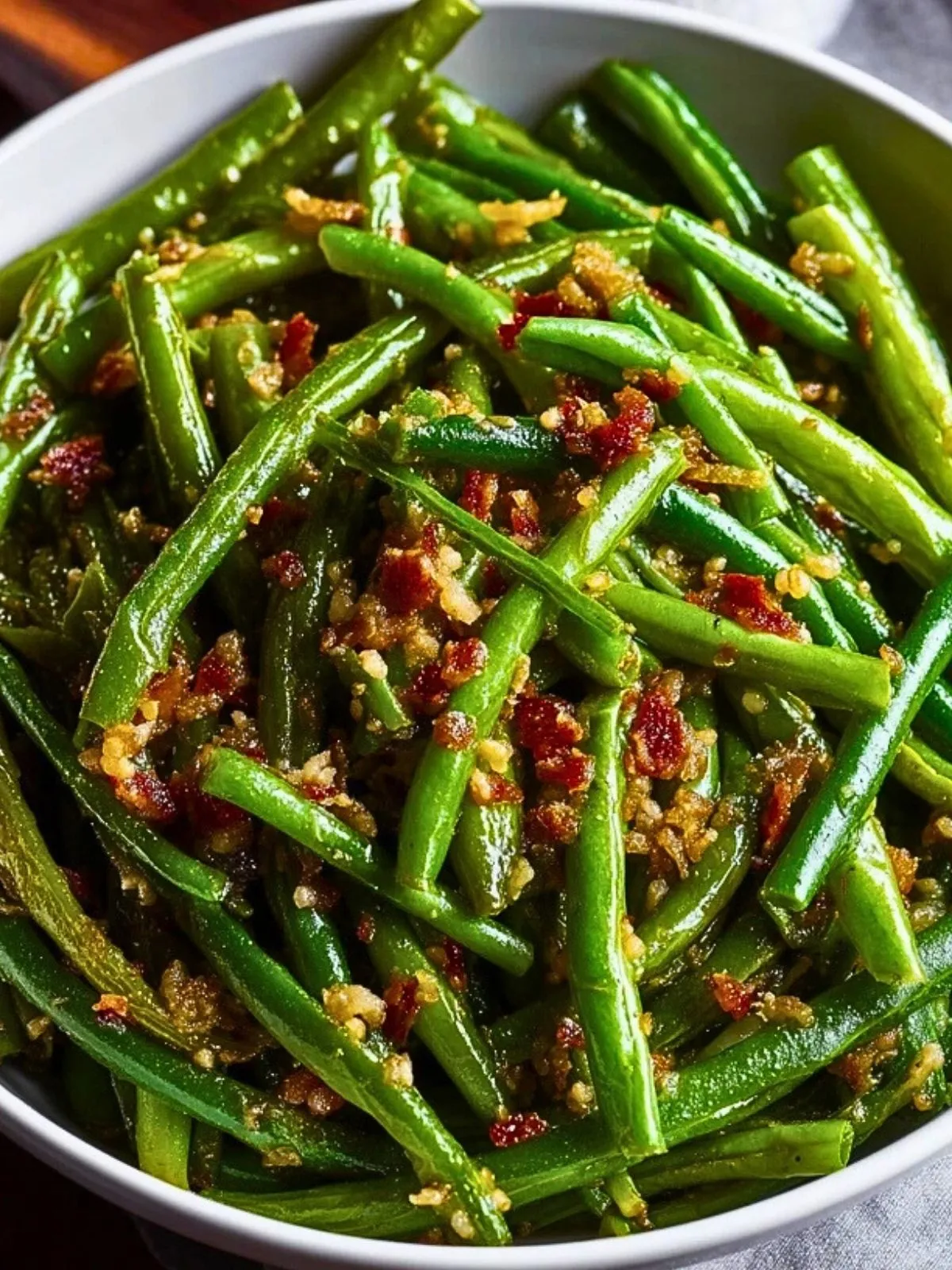 - Grüne Bohnen: Die Basis des Gerichts – frisch, knackig und voller Aroma.