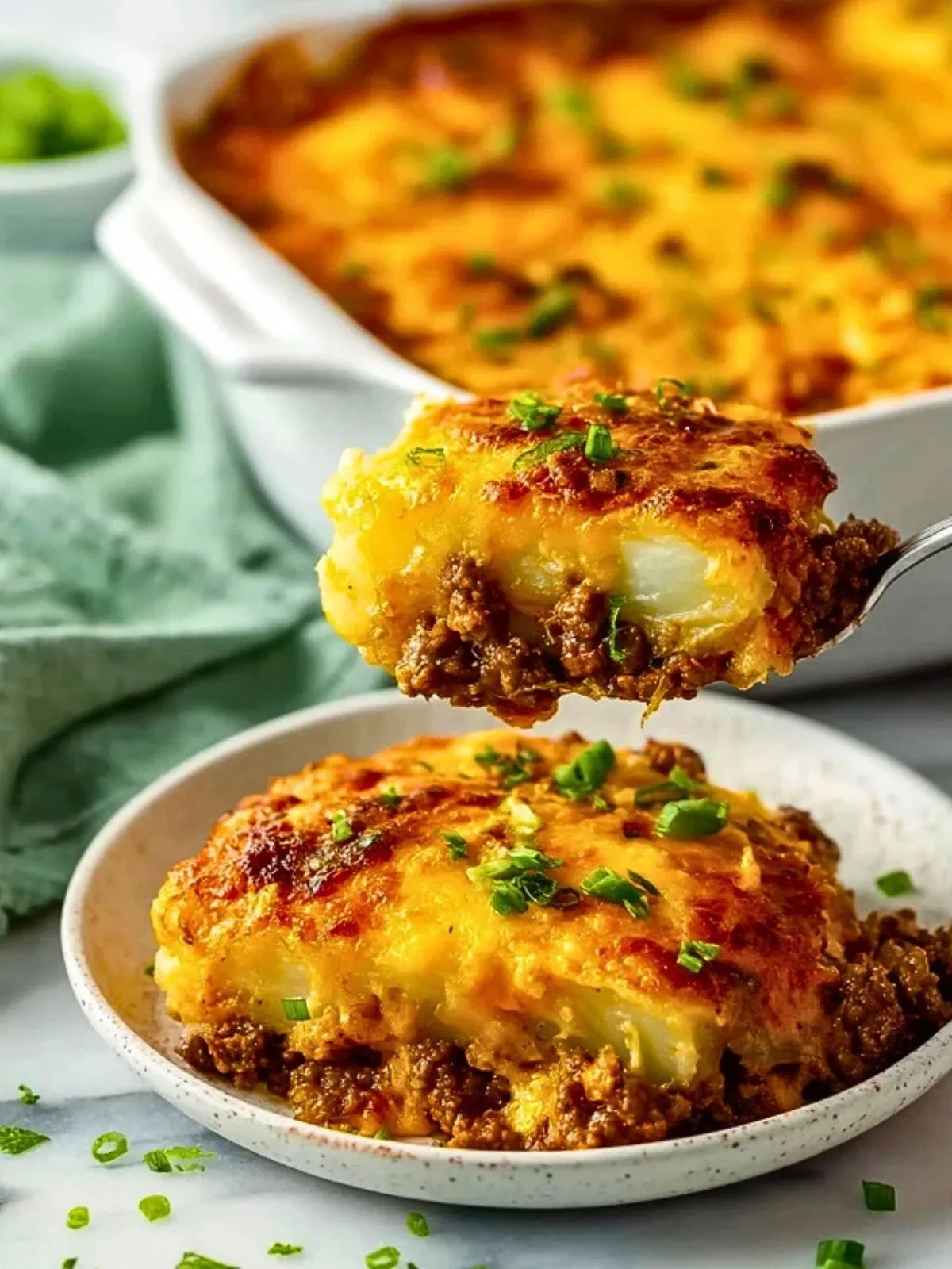 Ein herzhaft-cremiger Hackfleisch-Kartoffelauflauf mit würziger Hackfleischsauce, zarten Kartoffelscheiben und goldbrauner Käsekruste. Perfekt für die ganze Familie, einfach vorzubereiten und wunderbar zum Vorbereiten und Aufwärmen!