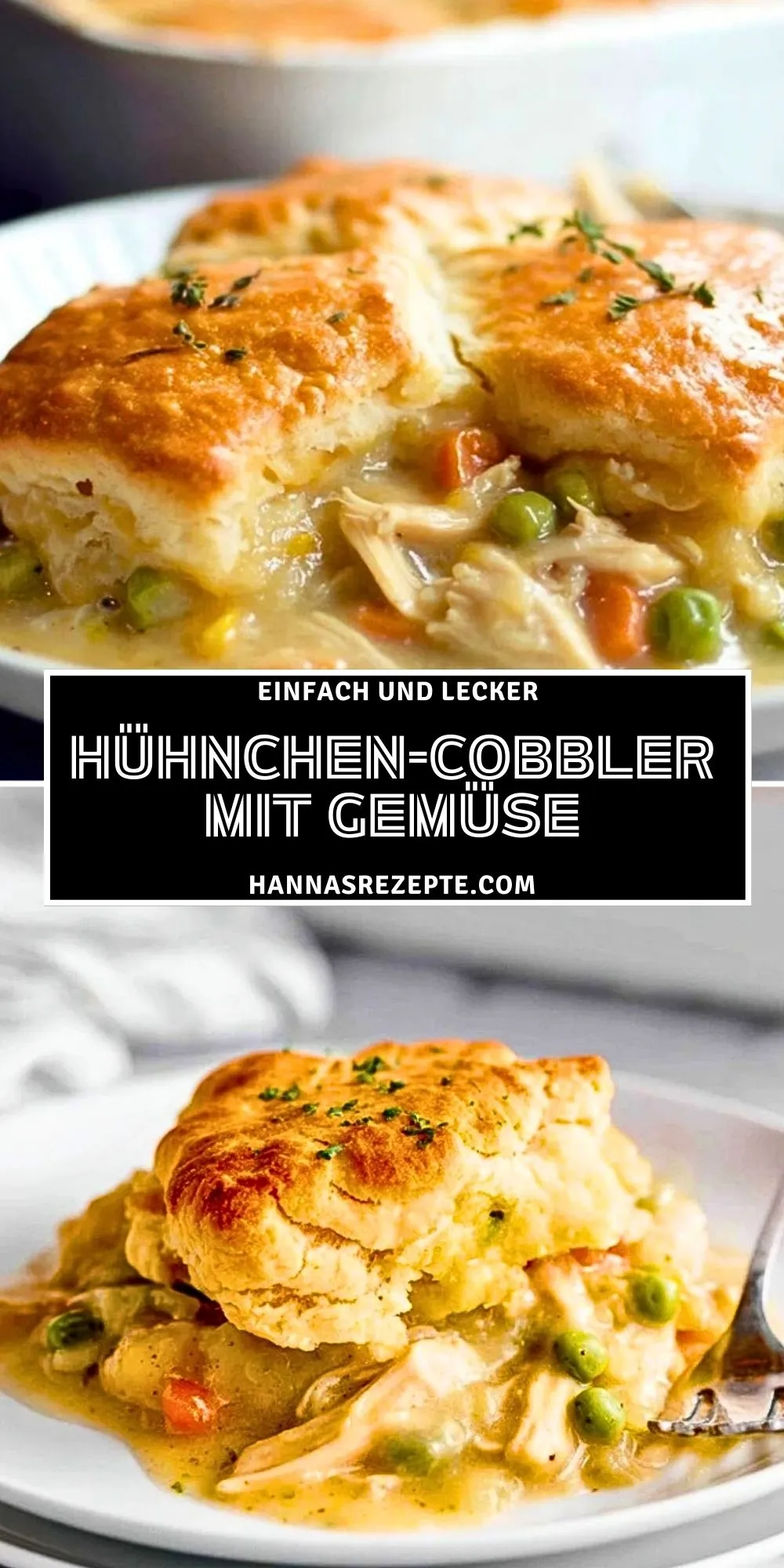 Ein Hühnchen-Cobbler mit Gemüse ist ein echter Wohlfühlklassiker, der besonders an kühlen Tagen für Wärme und Geborgenheit sorgt. Zartes Hähnchenfleisch vereint sich mit einer cremigen Sauce, knackigen Erbsen, Möhren und Mais – und das alles wird von einer goldbraunen, knusprigen Teigdecke gekrönt. Dieses Gericht bringt das Beste aus einem Auflauf und einem herzhaften Cobbler zusammen und eignet sich perfekt für ein entspanntes Familienessen oder als Highlight beim Sonntagsbrunch.