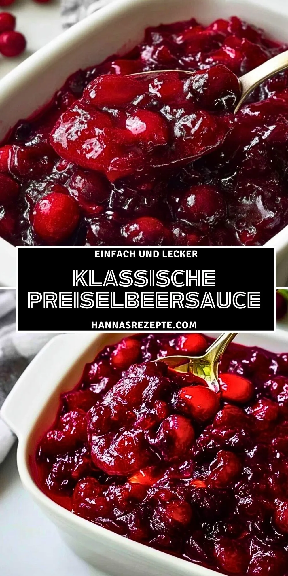Klassische Preiselbeersauce besticht durch ihren fruchtig-herben Geschmack und die leuchtende Farbe. Perfekt zu Wild, Braten, Frikadellen oder als raffinierte Ergänzung zu Käse und Desserts. Sie lässt sich schnell zubereiten und hält sich gut im Kühlschrank – ein echtes Must-have für jedes Festessen!