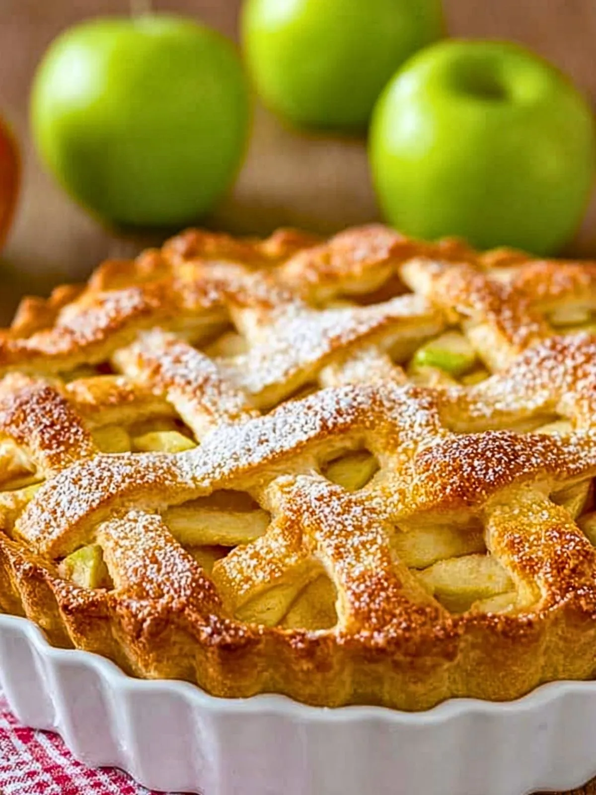 Ein klassischer amerikanischer Apfelkuchen mit knusprigem Gitter, aromatischer Zimt-Note und einer saftigen Apfelfüllung. Perfekt für jeden Anlass, besonders im Herbst, und am besten lauwarm mit einer Kugel Vanilleeis oder etwas Schlagsahne serviert.