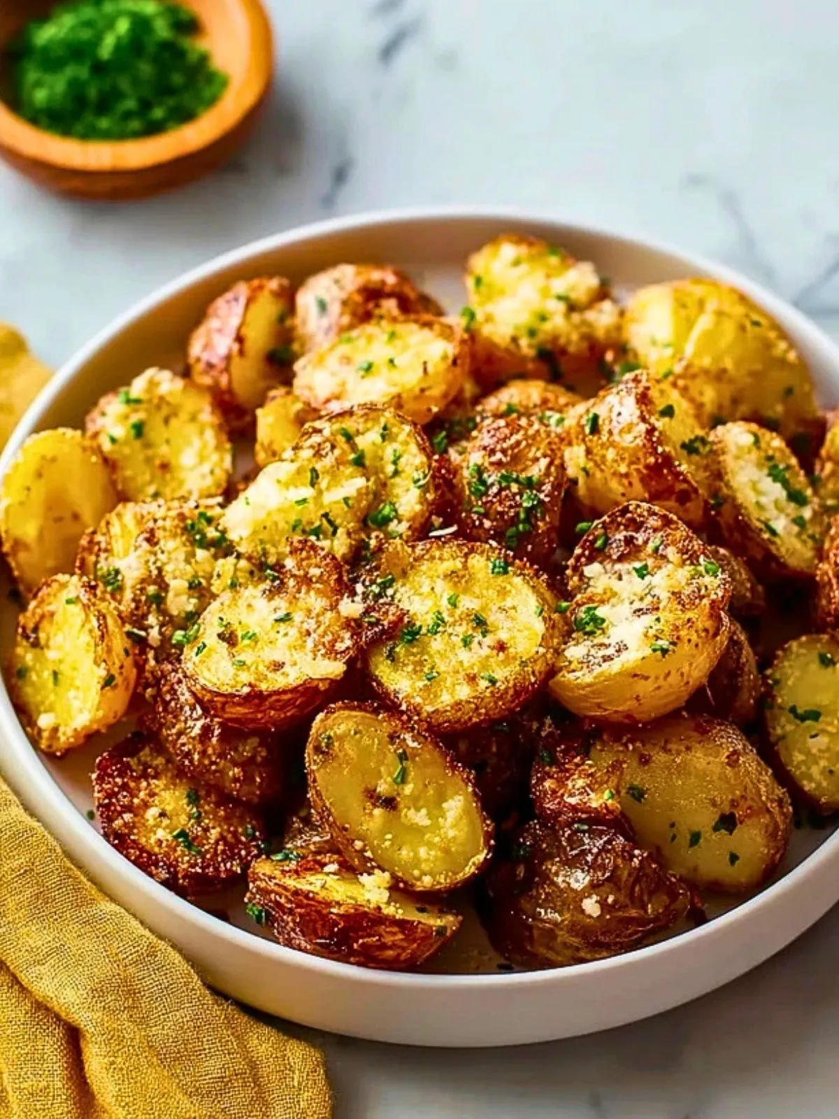 So bereitest du Knoblauch Parmesan Röstkartoffeln zu
