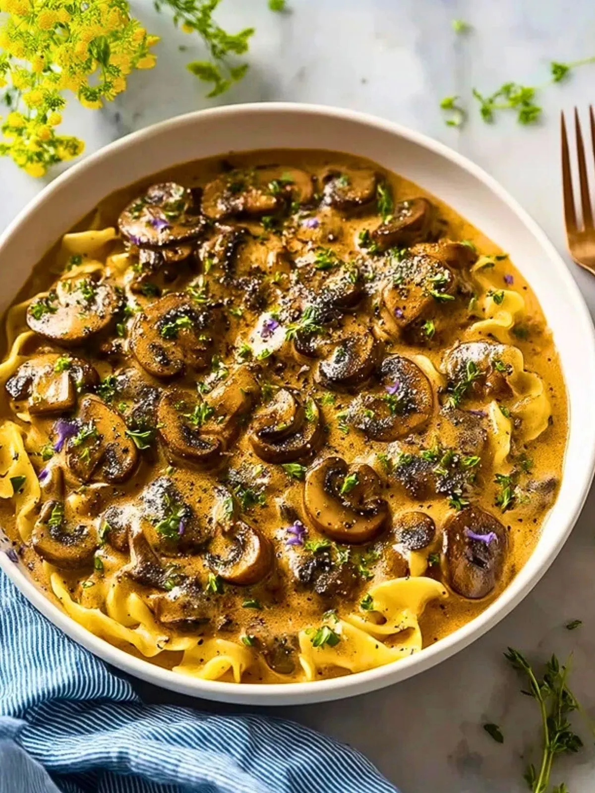 Dieses Gericht überzeugt durch seine einfache Zubereitung und die reichhaltige, cremige Sauce. Knoblauch und Pilze harmonieren perfekt miteinander und sorgen für ein echtes Geschmacksfeuerwerk. Besonders für Vegetarier oder Flexitarier ist dieses Rezept eine tolle Alternative zum klassischen Stroganoff mit Fleisch – ohne Kompromisse beim Aroma.