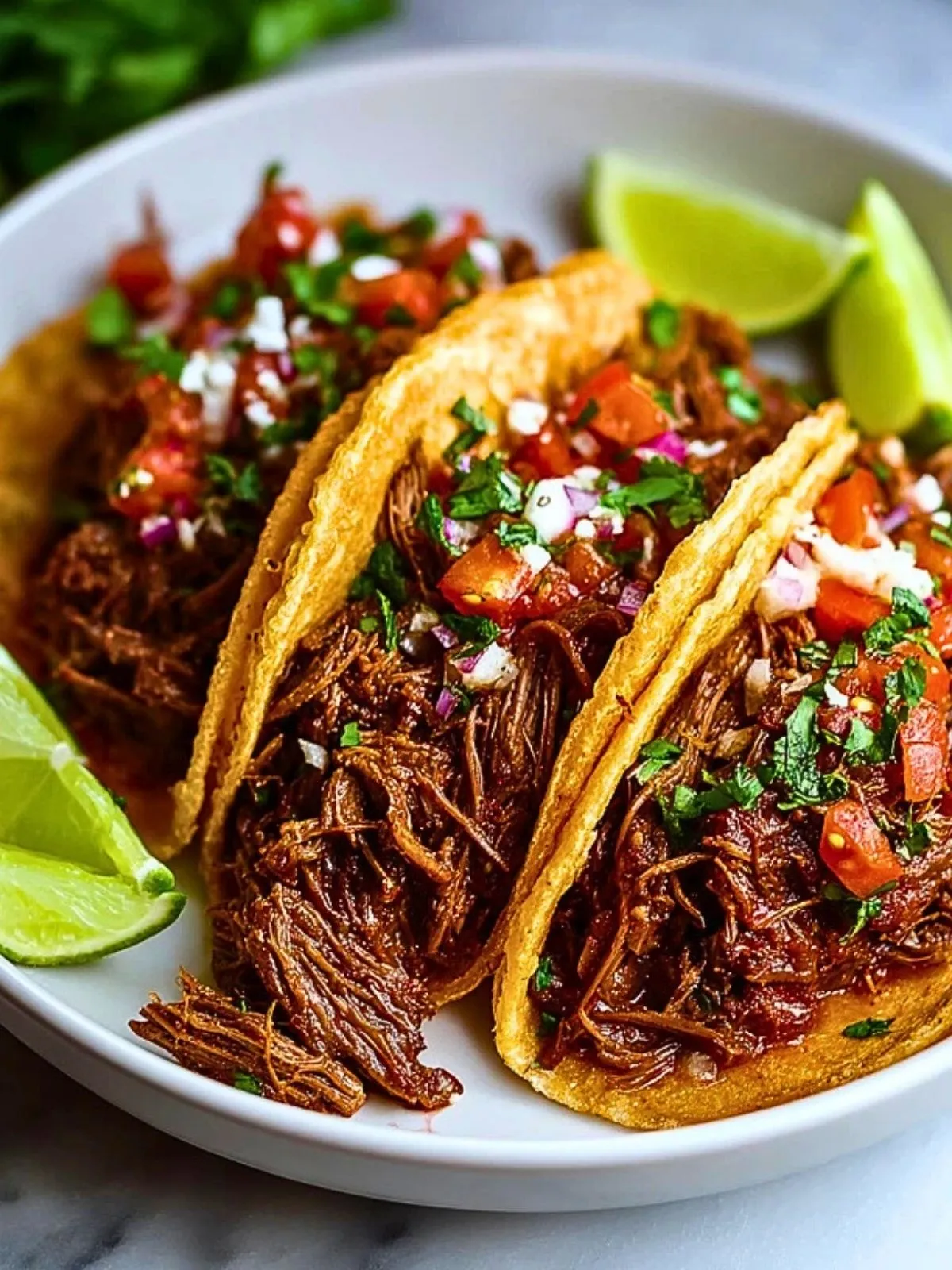Saftiges, langsam geschmortes Rindfleisch, das förmlich auseinanderfällt, trifft auf warme Maistortillas, frische Kräuter und einen Spritzer Limettensaft – diese Mexikanischen Rindfleisch-Tacos aus dem Slow Cooker bringen intensives Aroma direkt auf deinen Teller. Durch die lange Garzeit im Schongarer verbinden sich Gewürze, Fleischsaft und Tomaten zu einer würzigen, tiefen Sauce, die jedes Taco unwiderstehlich macht.