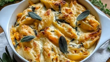 Mit Kürbis und Gouda gefüllte Muschelnudeln mit brauner Butter-Salbei-Alfredo-Soße