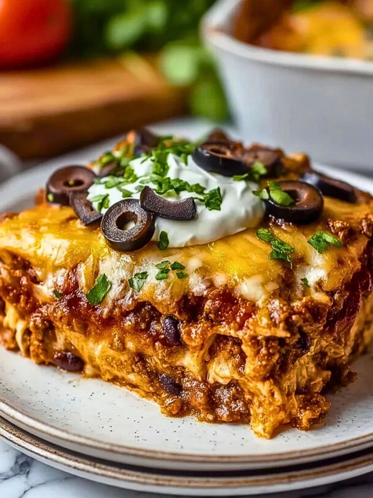 Herzhafter Rindfleisch Enchilada Auflauf mit würzigem Hackfleisch, Bohnen, Mais und viel geschmolzenem Käse. Perfekt für ein unkompliziertes Familienessen oder als Partykracher – schmeckt sogar am nächsten Tag noch besser!