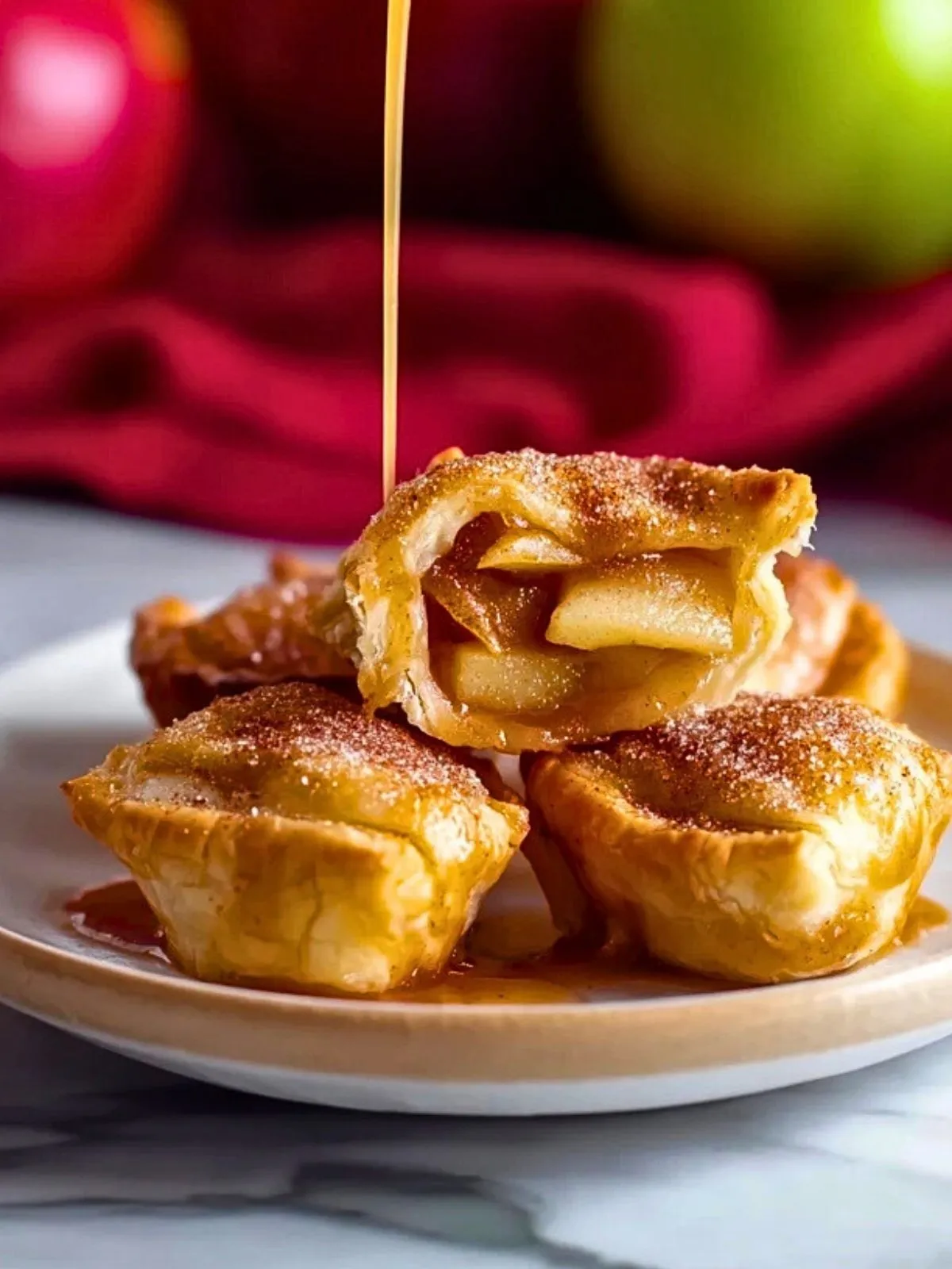 Besonders in der kälteren Jahreszeit gibt es kaum etwas Besseres als den Duft von gebackenen Äpfeln und Zimt, der durch die Küche zieht. Die Häppchen eignen sich ideal für spontane Gäste, als Mitbringsel oder als süßer Snack zum Nachmittagskaffee. Ein Klecks Karamellsoße obendrauf macht sie unwiderstehlich.