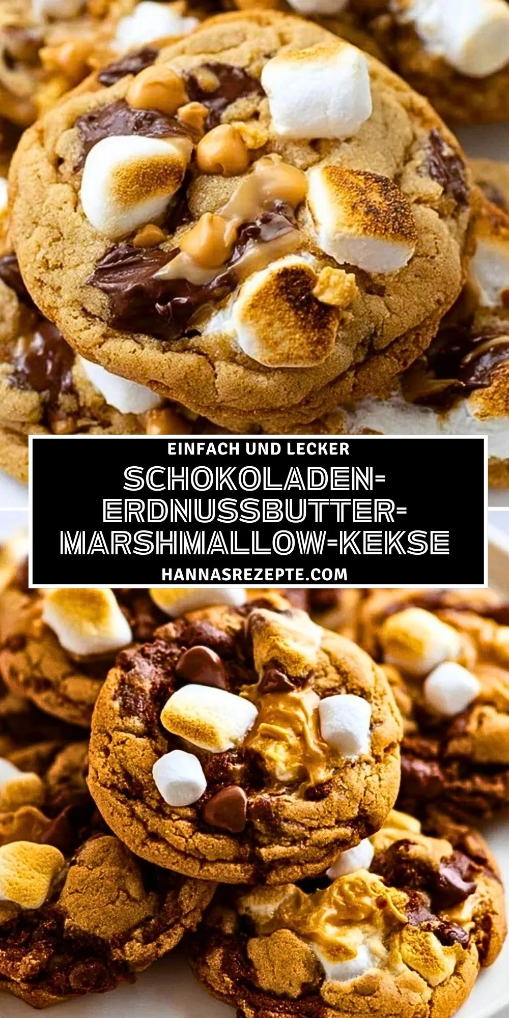 Diese Schokoladen-Erdnussbutter-Marshmallow-Kekse sind ein echter Genuss für alle, die klassische amerikanische Cookies lieben – aber mit dem gewissen Extra! Der Duft von frisch gebackenen Keksen, schmelzender Schokolade, cremiger Erdnussbutter und kleinen Marshmallows erinnert sofort an gemütliche Lagerfeuer und versüßt jede Kaffeepause. Das Zusammenspiel von weichem Keks, leicht knusprigen Rändern und einem zarten Kern voller süßer Überraschungen macht diese Cookies unwiderstehlich.