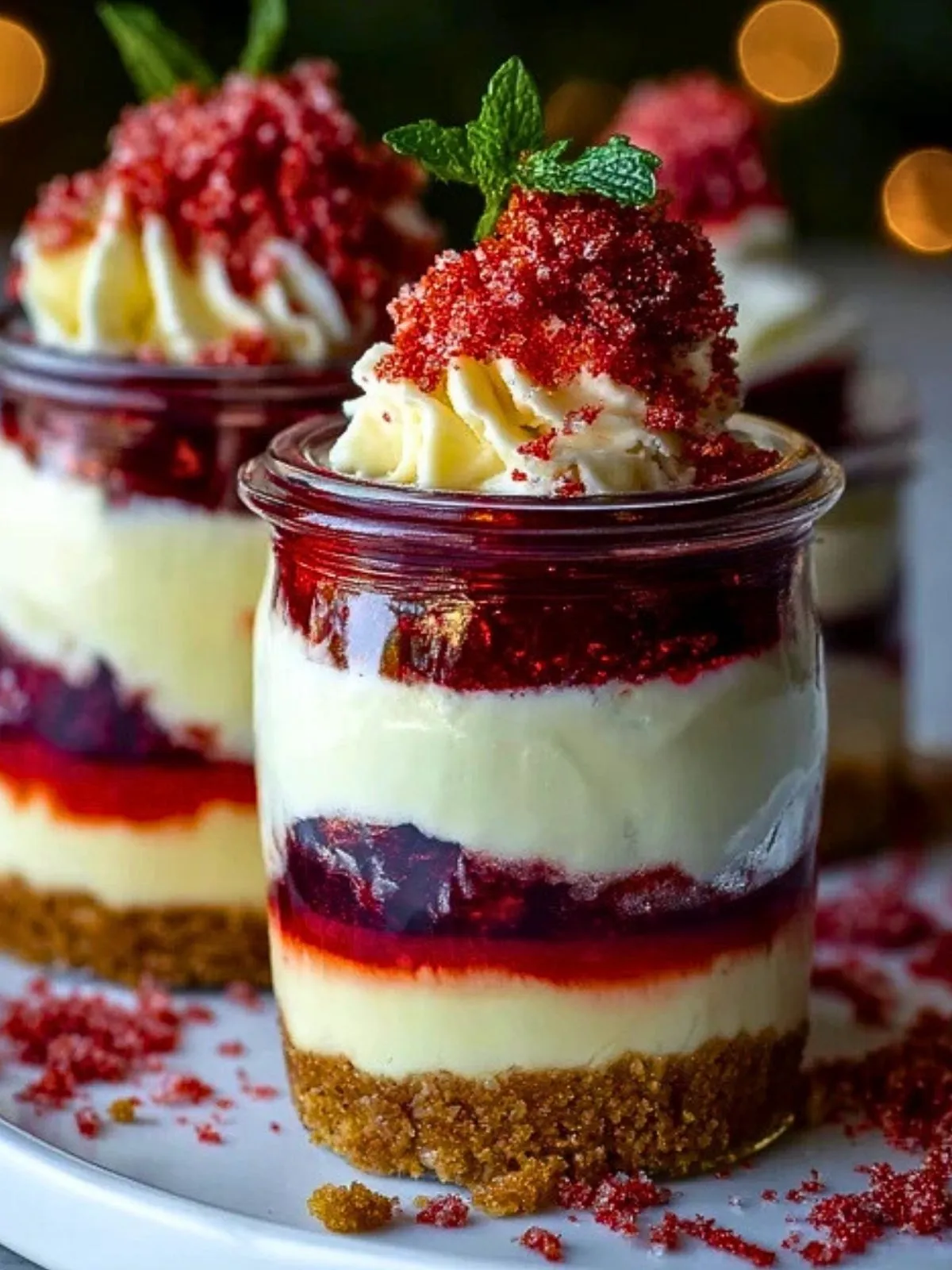 Keywords: Cheesecake, Weihnachten, Parfait, Zuckerstange, Glasdessert